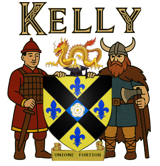 The coat of arms shown above incorporates that attributed to Kelly of that Ilk, by